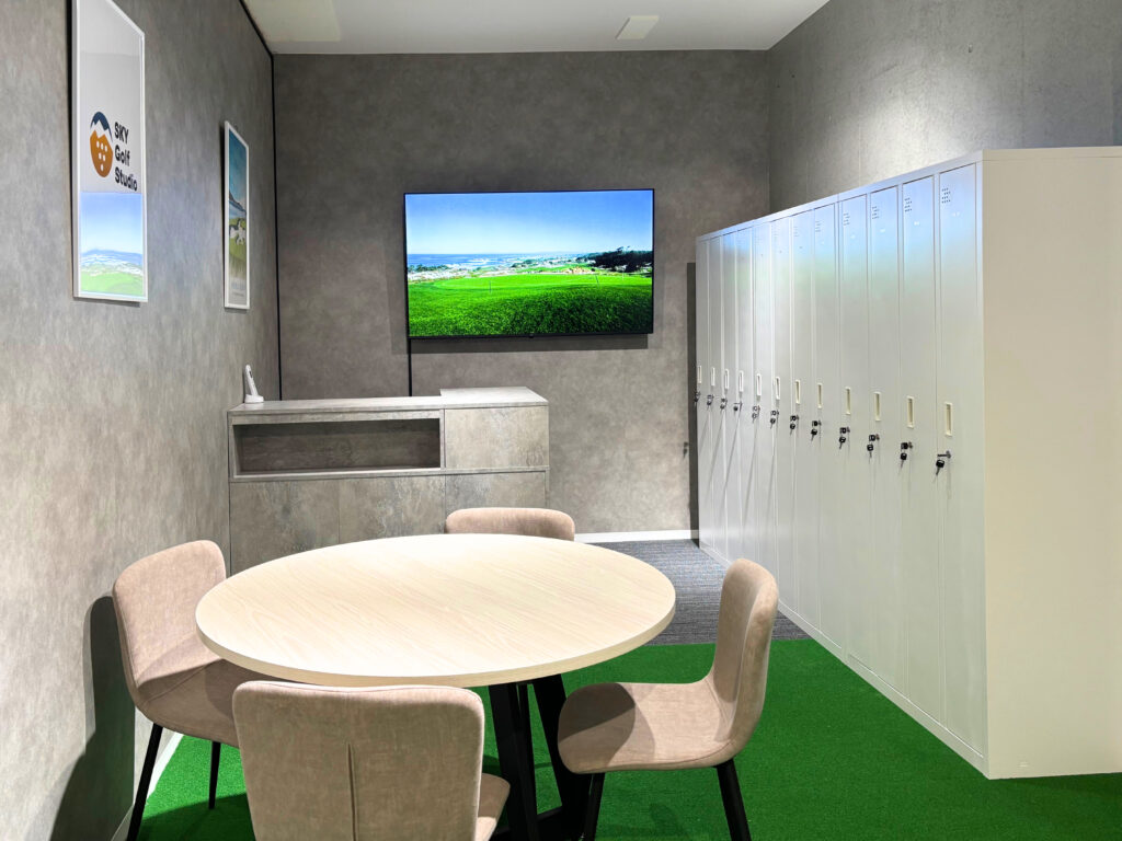 明るく清潔感のある受付では、スタッフが笑顔でお迎えいたします。オプションのロッカーは数に限りがありますが、ご自身のクラブを保管しておくことができるるので、手ぶらで通いたい方にはおすすめです。